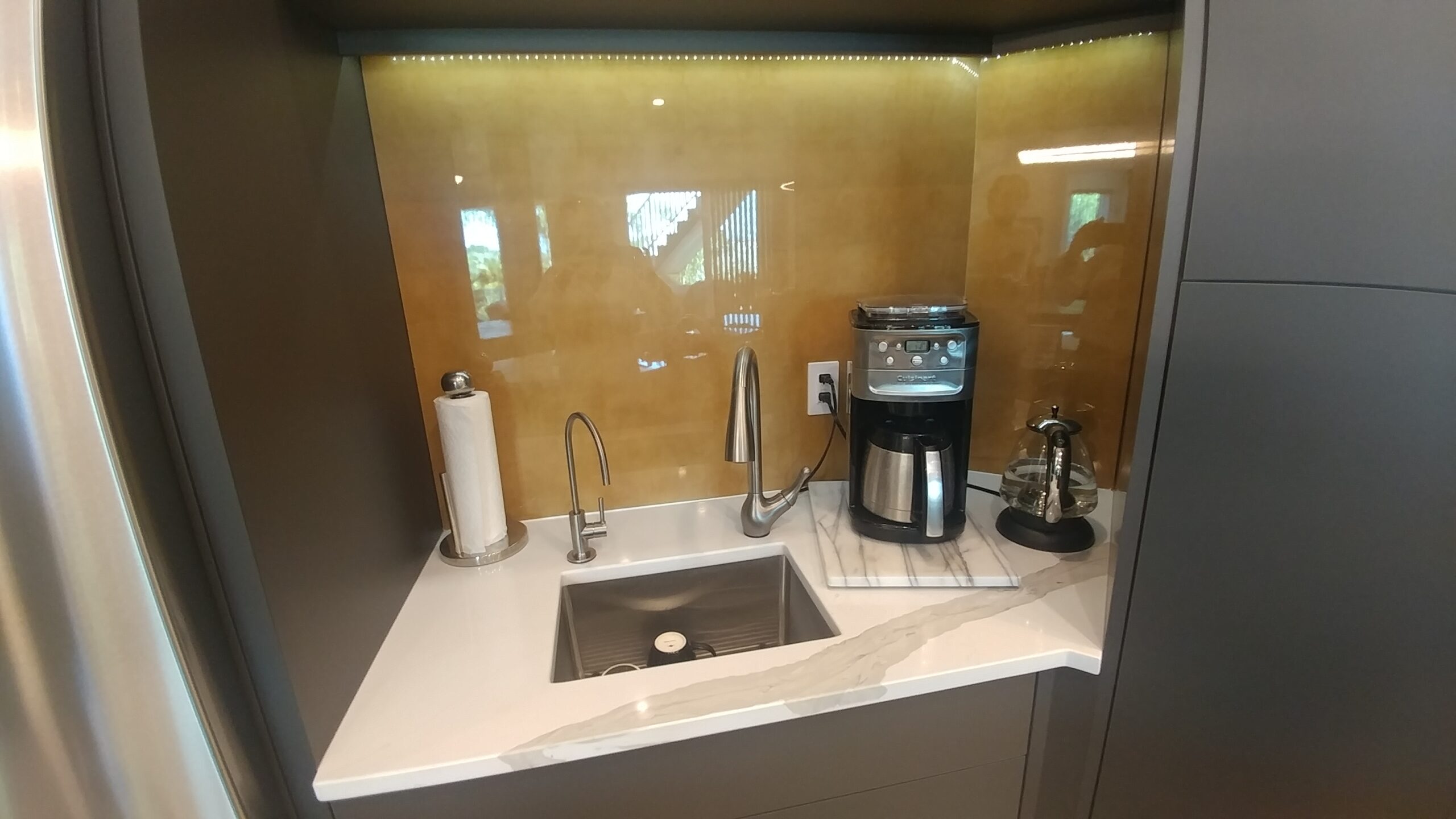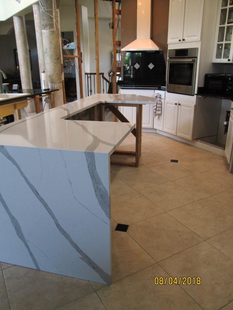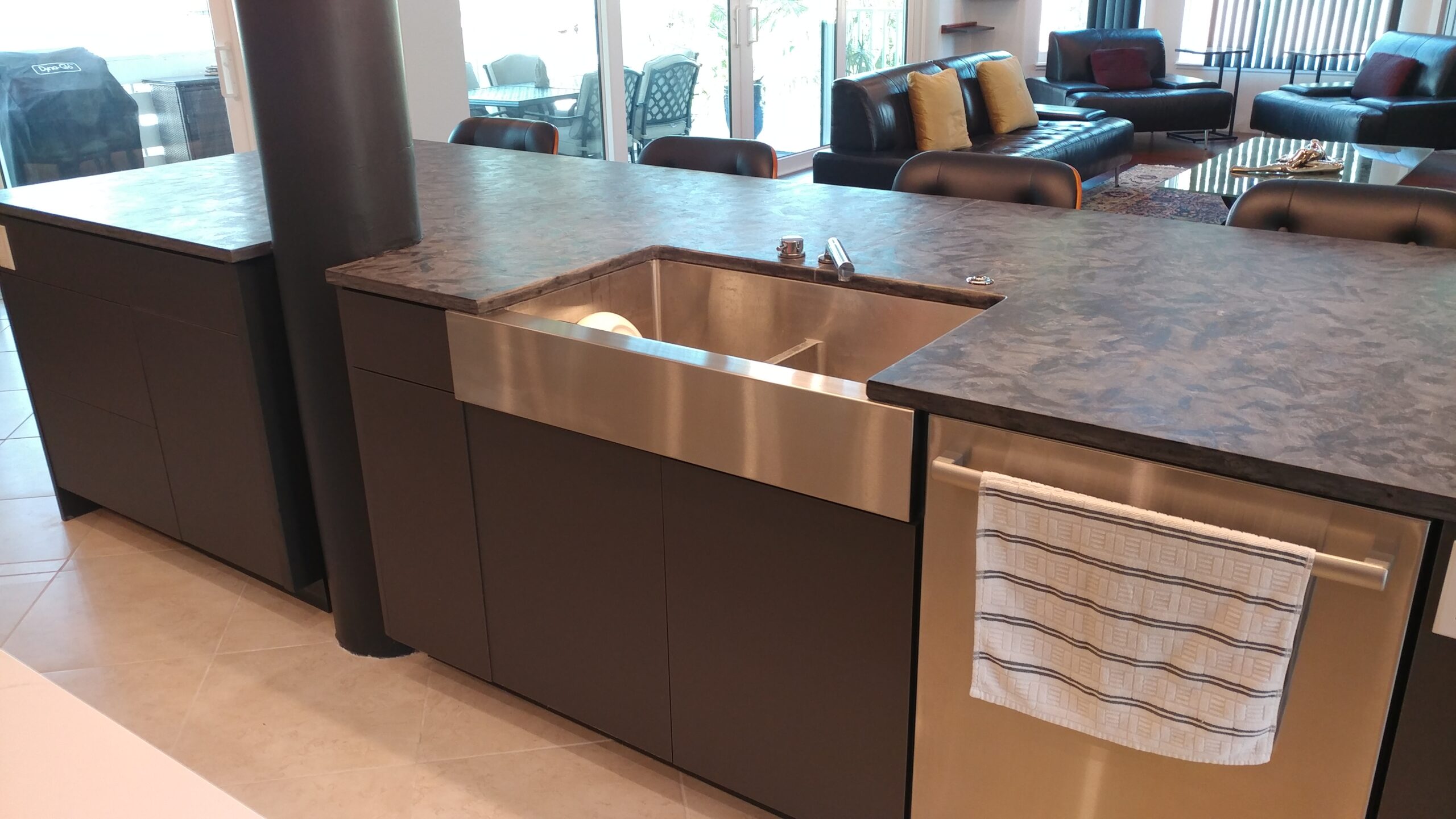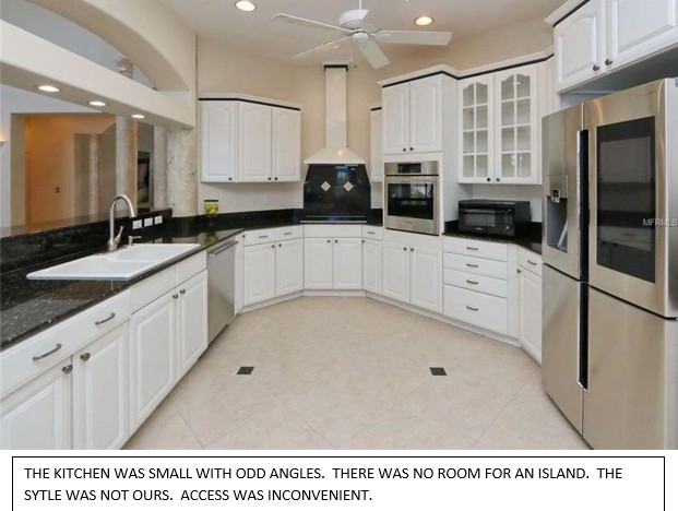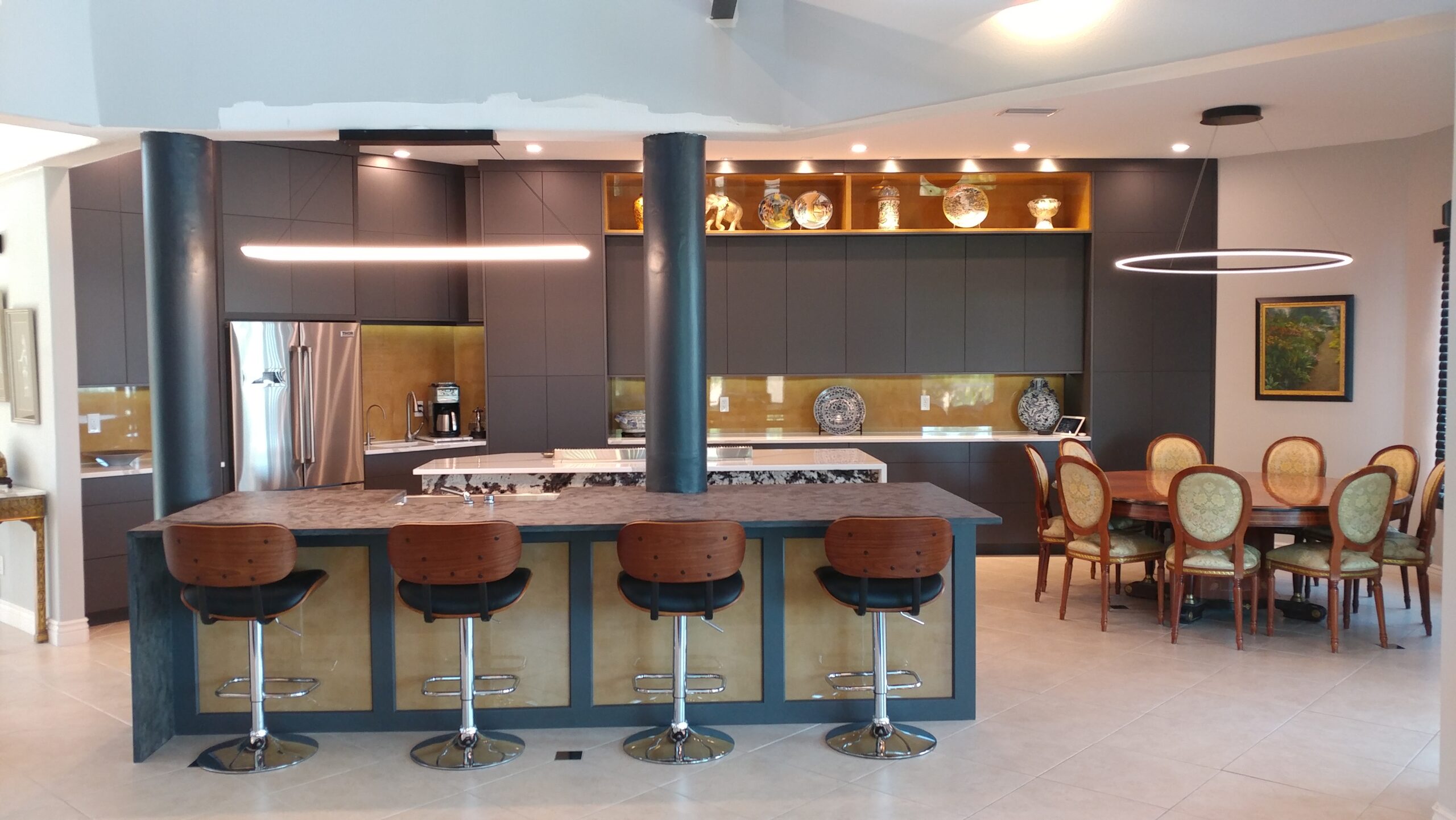 A while back, we took on the design challenge of a dated kitchen full of angles and an island top already in place. These photos are of our creation (executed by another contractor). Today He was kind enough to invite us back to see the almost completed project and it is absolutely stunning in person! Bye bye white shaker – Matte Black is Trending!